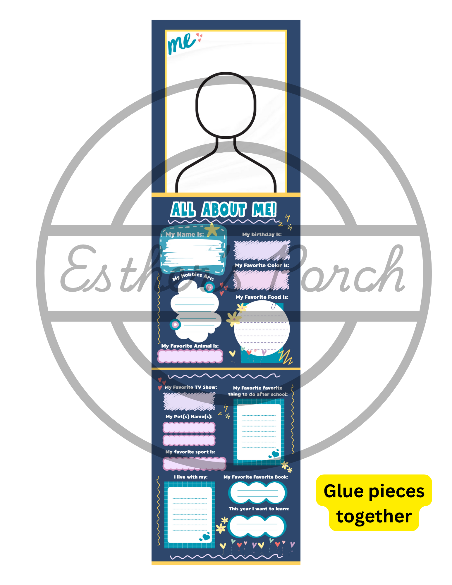 Our All About Me template is a fun and creative way for kids to introduce themselves at the start of the school year! Designed with young learners in mind, this printable worksheet invites children to draw a picture of themselves and fill in fun facts like their name, favorite things, what they’re good at, and what they want to learn. It’s a perfect first-week activity that helps build classroom community, encourages self-expression, and makes every student feel seen and valued. Once completed, these colorful pages make a wonderful display to hang up in the classroom—turning your walls into a celebration of your students' unique personalities! Great for preschool, kindergarten, and early elementary classrooms.