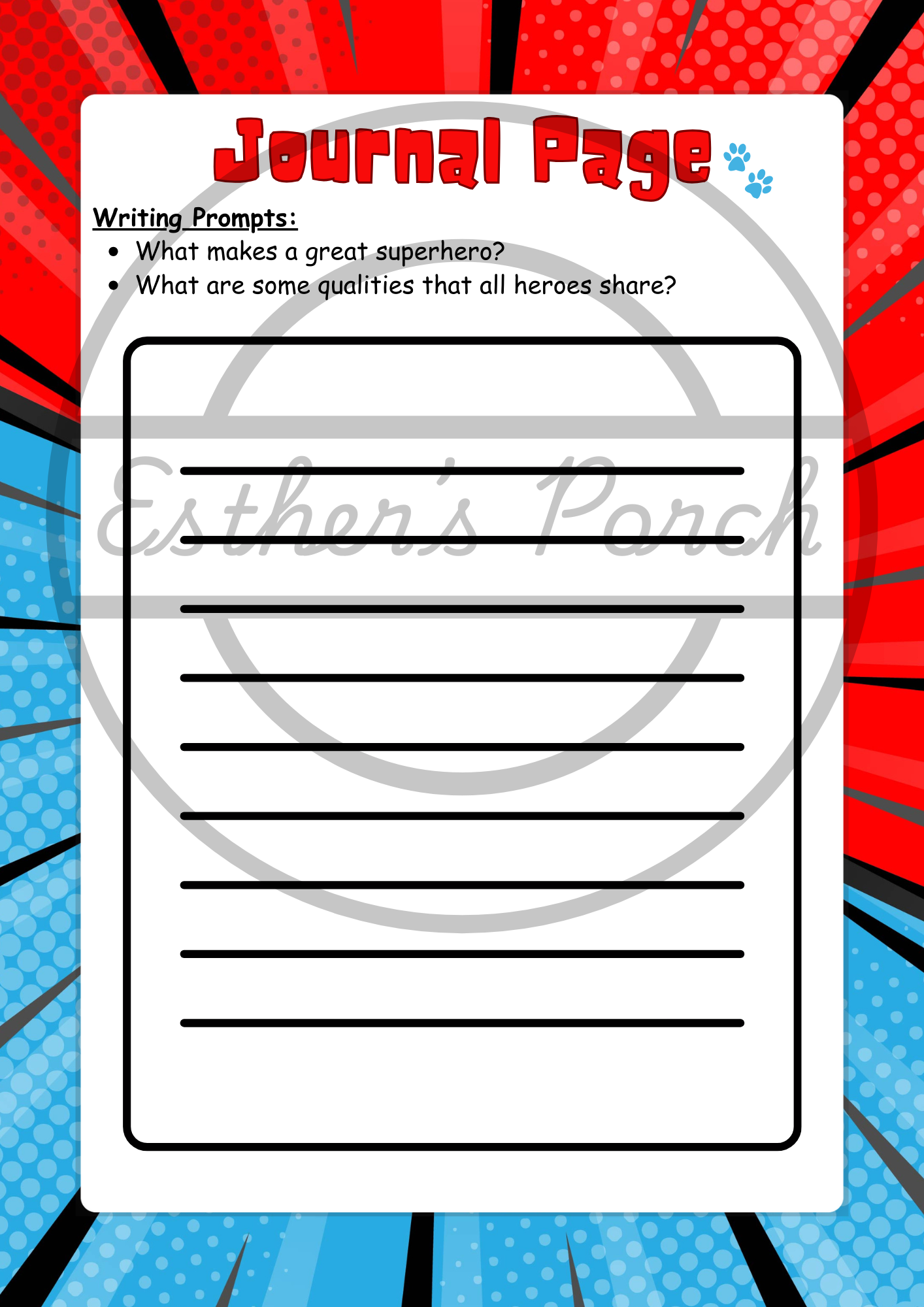 Perfect for classrooms, homeschool, or enrichment programs, this flexible unit includes step-by-step plans, journal prompts, creative name generators, comic strip and mask templates, a Super Pet Builder, and a Flip-O-Rama sheet. Use with any comic book or as a standalone storytelling spark!
